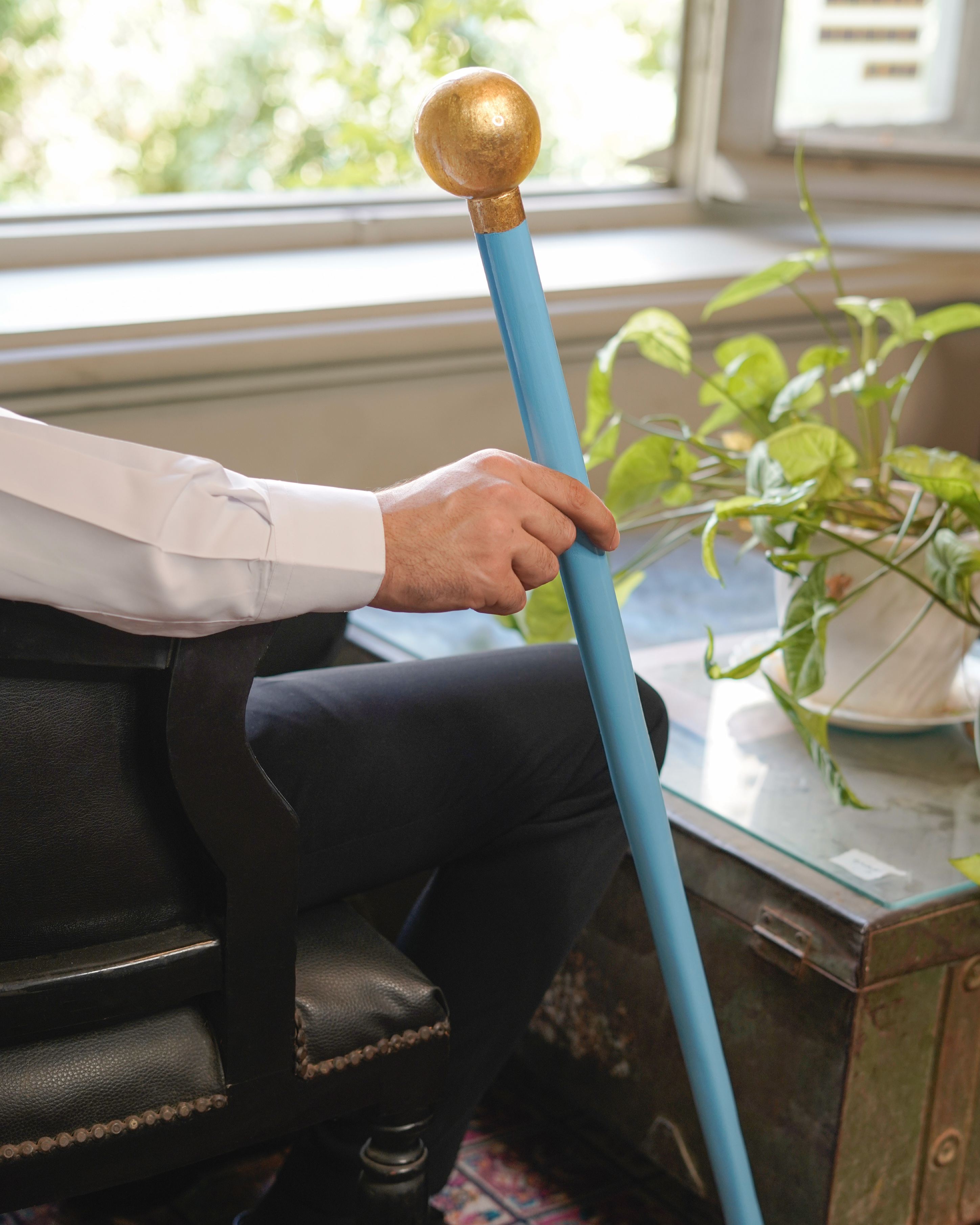 عصا شاهی ماندانا با ترکیب رنگ آبی آرامشبخش و دستهی کروی پتینه طلایی، یکی از منحصربهفردترین طراحیهای مجموعه عصاخان است. تضاد رنگ آبی و طلا، جلوهای همزمان سلطنتی و مدرن ایجاد کرده که هم برای استفادهی روزمره و هم برای مناسبتهای خاص چشمگیر است.