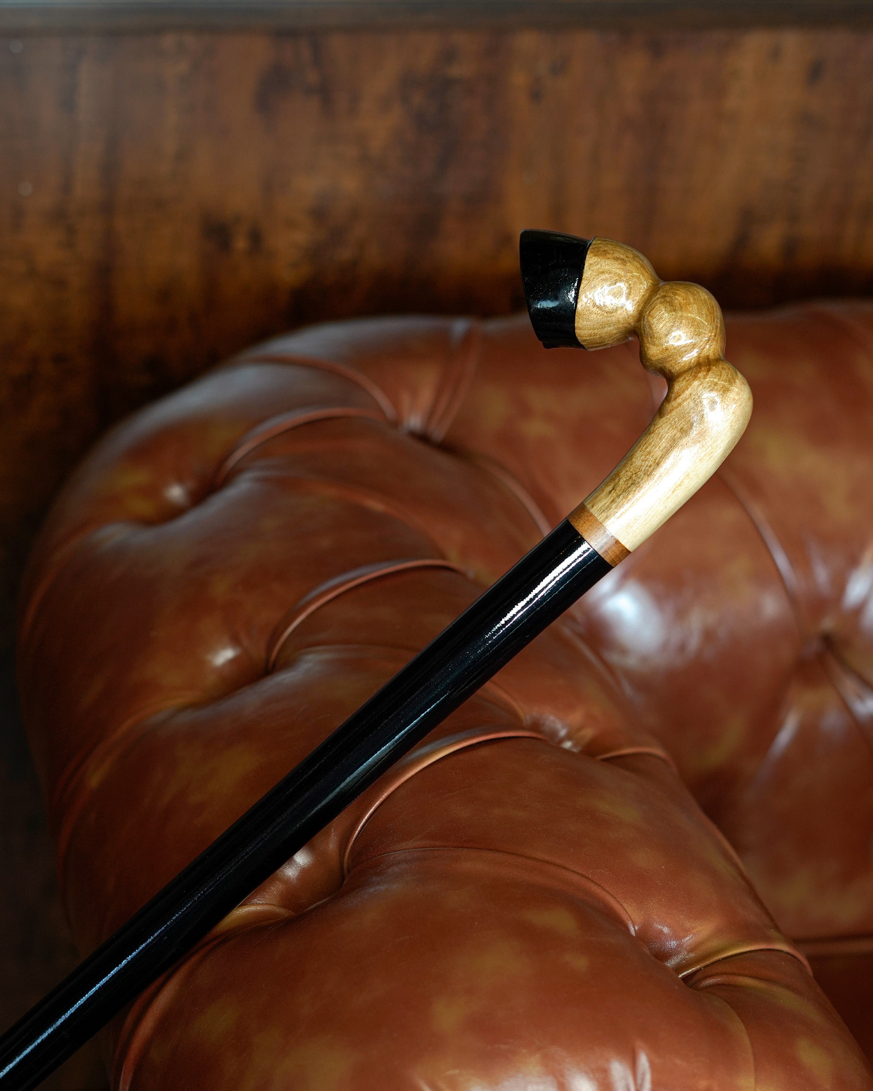 دستهی پیکری این عصا شکل گرفته بر اساس فرم طبیعی است؛ انگشتان روی قسمت های مقعر دسته جای میگیرند و تماس دست با چوب حس امنیت و کنترل کامل را منتقل میکند. انحناها هم بصری جذاباند و هم از نظر عملکردی مانع سرخوردن دست میشوند.