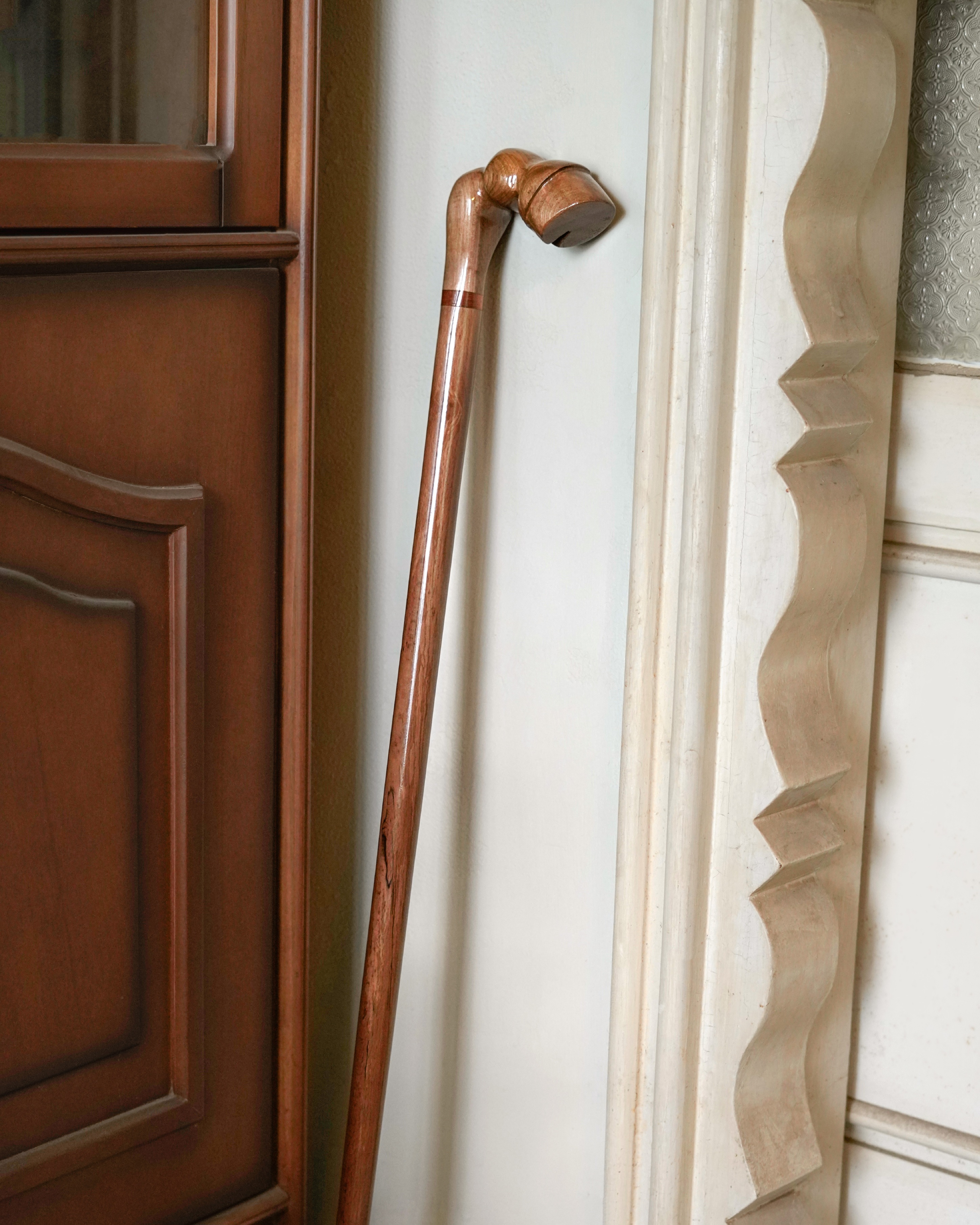 پرداخت و رنگ آمیزی: رنگ قهوهای گرم با لاک براق، رگههای چوب را برجسته کرده و حس کلاسیک بودن را تقویت میکند. حلقهی کاجی بهصورت ملایم تضاد ایجاد کرده که چشم را مینشاند.