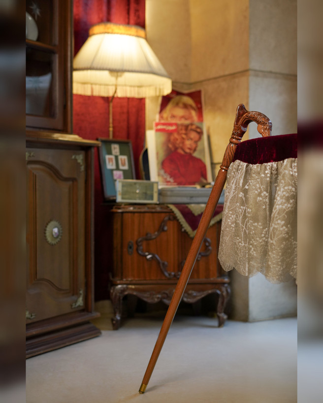 فرم دسته بهگونهای طراحی شده که کف دست را کامل میپوشاند و انحنای سر اسب علاوه بر جلوهٔ بصری، نقاط تماس دست را توزیع میکند تا فشار در زمان راه رفتن کاهش یابد.